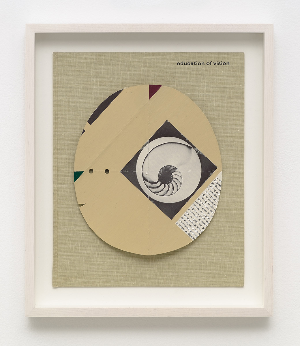 p.27, 40 (Ear Nautilus), 2011. Acrylic on cut book pages mounted on linen book cover, 11″Hx9″Wx11/4″D